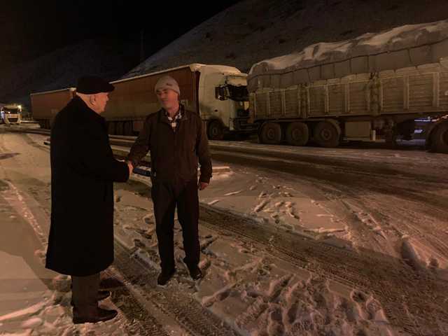 Kış mevsiminde zor bir meslek sahibi oldukları için Rabbim bu zor koşullarda her birinin ailelerine götürecekleri ekmek paralarının bereketlendirsin. Mevlam kazasız belasız yolculuklar nasip eylesin. Kop dağı geçidi ilerleyen saatlerde ulaşıma açılmadığı takdirde kop köyünde bekletilen tır ve kamyon şoförlerine belediyemiz tarafından yiyecek ve içecek ikram edilecek” dedi.