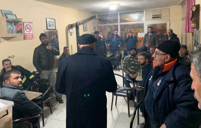 Sahadaki çalışmalarımızı takip ettikten sonra Kop dağı geçidinin kar ve tipi nedeniyle ulaşıma kapanmasından dolayı Bayburt – Erzurum yolunun 7. kilometresinde Bayburt Sanayi Sitesinde bekleyen cefakar kamyon ve tır şoförlerini ziyaret ettim. Kendilerinin Bir kaç saatliği nede olsa bizim misafirlerimiz olduklarını belirterek herhangi bir ihtiyaçlarının bulunup bulunmadıkları sorarak sanayi sitemizde bulunan çay ocağında şoför arkadaşlarımızla çay içerek sohbet ettik.