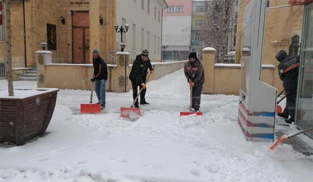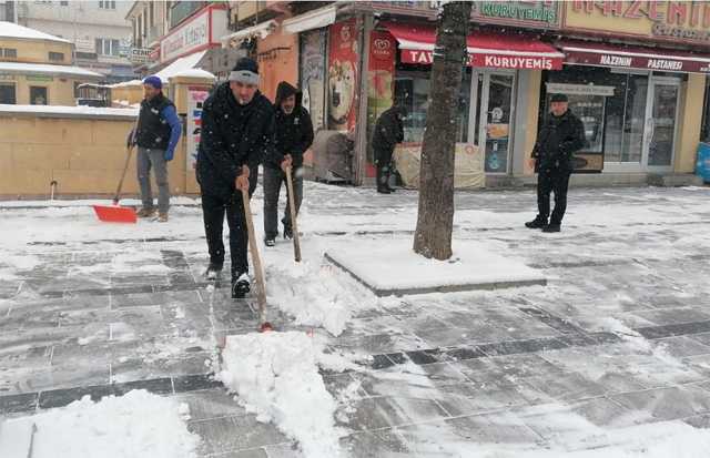Belediyenin karla mücadele ekipleri ana arterler, kaldırımlar ve mahallelerde kar temizlik çalışmalarının yanı sıra buzlanma tehlikesine karşı tuzlama çalışmalarını da devam ettiriyor.