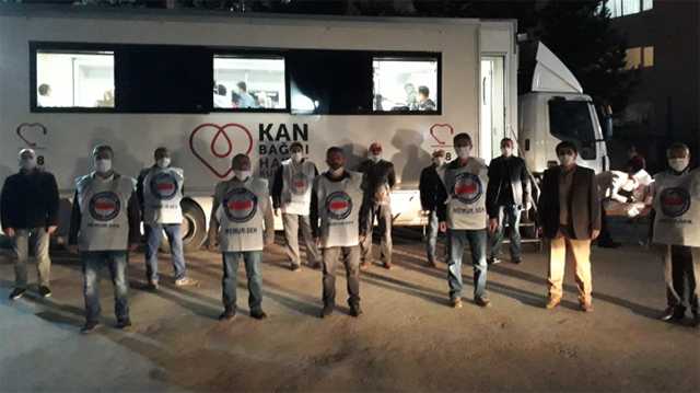 Bayburt’ta Milli Eğitim Müdürlüğü bahçesinde kurulan kan bağışı otobüsüne gelen Memur – Sen yönetimi ve üyeleri sosyal mesafe kurallarına uyarak kan bağışında bulundular.