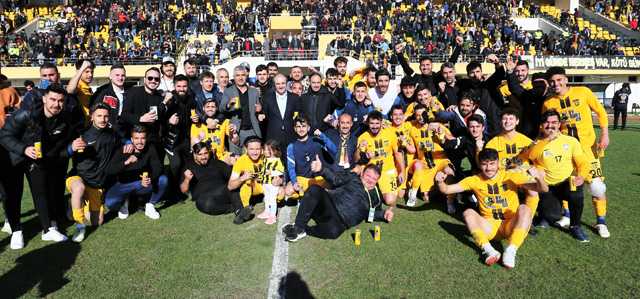 Maçın 90 dakikası sonrasında sahada büyük sevinç yaşayan futbolculara tribünlerde taraftarlarda eşlik edince güzel görüntüler yaşandı.