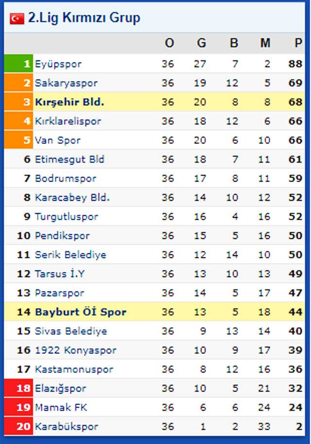 5 maçtır yenilmeyen Bayburt Özel İdarespor aldığı mağlubiyetle 44 puanda kalırken, Kırşehir Belediyespor aldığı galibiyetle puanını 68’e yükseltti.
