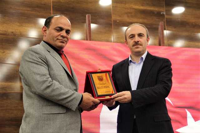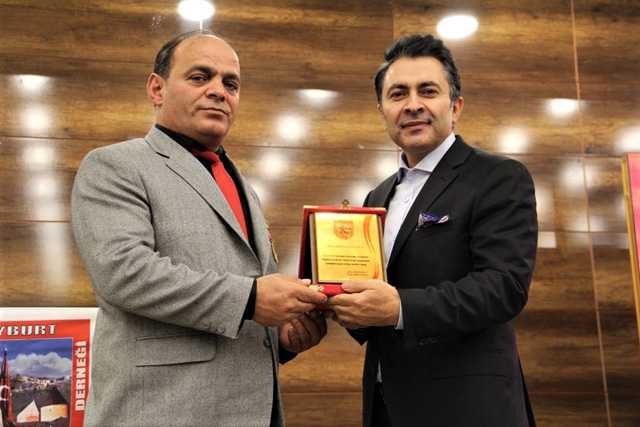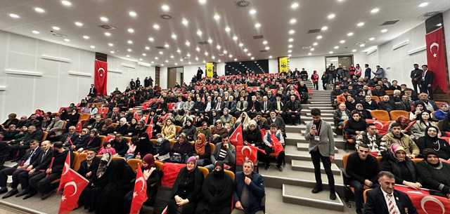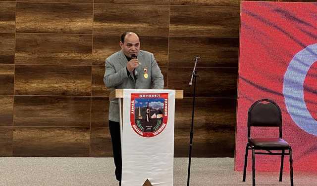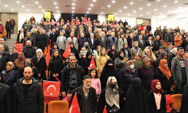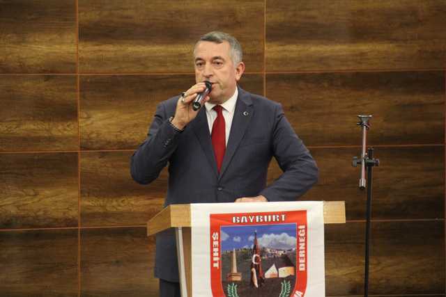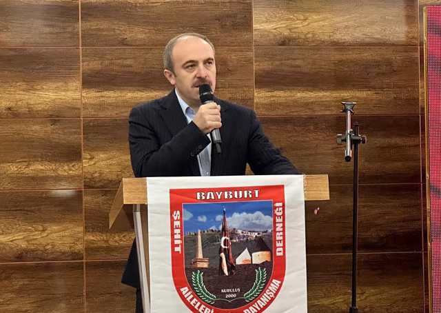Şehit ve Gazi Aileleri Dayanışma Derneği Başkanı Selami Köksal ve Türkiye Bayburtlular Federasyonu Başkanı Hasan Saka’ın konuşmalarının ardında. Belediye Başkanı Hükmü Pekmezci, Anadolu’nun kapılarının Türklere açıldığı 1071 Malazgirt Zaferi’nden buyana vatan topraklarının şehit kanlarıyla sulandığını belirterek, şehitlerin emaneti olan ailelerinin emirlerinde olduklarını söyledi ve programın düzenlenmesinde emeği geçenlere teşekkür etti.
