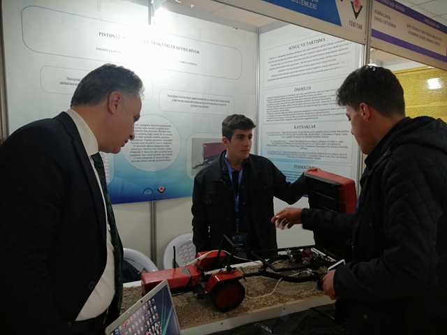 Atatürk Üniversitesi Sürekli Eğitim Merkezinde düzenlenen ve 10 ilden 100’ü aşkın projenin sergilendiği yarışmaya Mesleki ve Teknik Anadolu Lisesi öğrencileri Furkan Durmuş ve Zekeriya Çandır danışman öğretmen Eren Altun ile geliştirdikleri “Pistonlu römork ile traktörler devrilmiyor” ile Haktan Ateş ve Ömer Aktaş ise danışman öğretmenleri Fırat Aydoğdu ile geliştirdikleri “Güneş panellerinde verimi arttırmak İçin otonom soğutma sistemi” projesiyle Bayburt’u temsil ettiler.