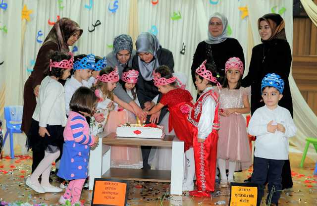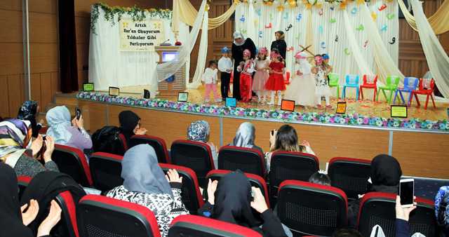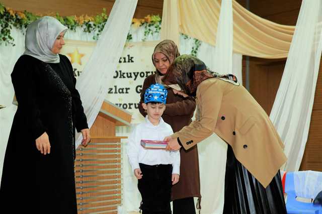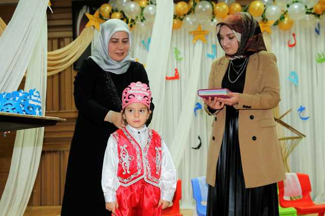 İstiklal Marşı’nın okunması ve Kur’an tilavetinin yapılması ile başlayan etkinlikte 4-6 yaş arası kreş öğrencilerine Kur’an okumaya geçtikleri için kreş eğitmenleri tarafından taç giydirildi.