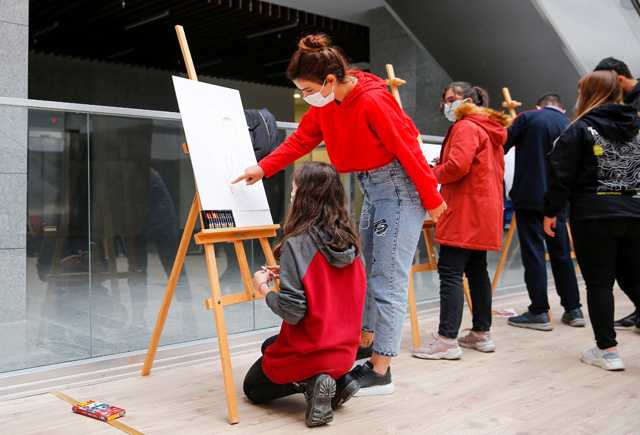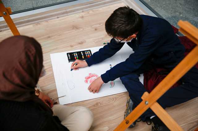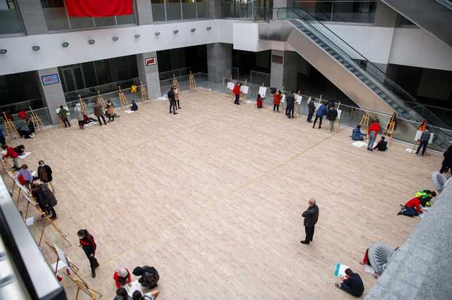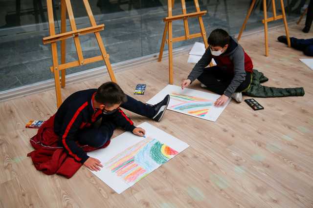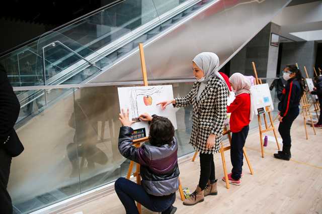 Sanat ve Tasarım Fakültesi Resim Bölümü öğrencilerinin rehberliğinde hazırlanan resimler etkinliğin sonunda sergilendi.