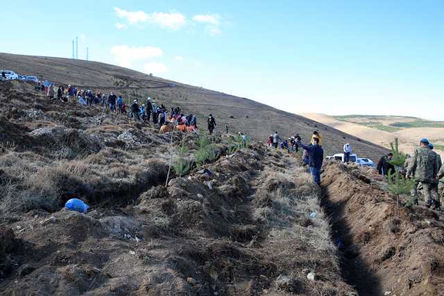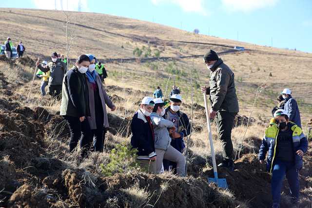 Konuşmaların ardından hazırlanan fidanlar belirlenen alanlarda toprakla buluşturuldu.