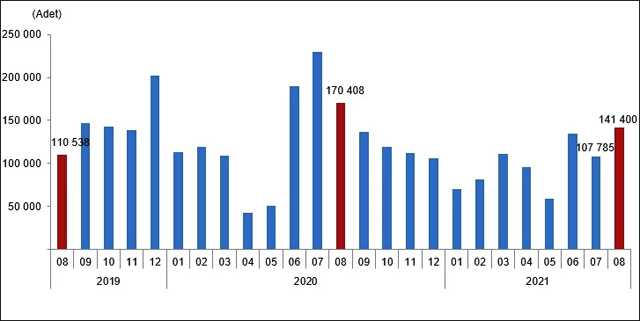 Yabancılara yapılan konut satışları, Ocak-Ağustos döneminde ise bir önceki yılın aynı dönemine göre yüzde 47,6 artarak 30 bin 849 oldu.