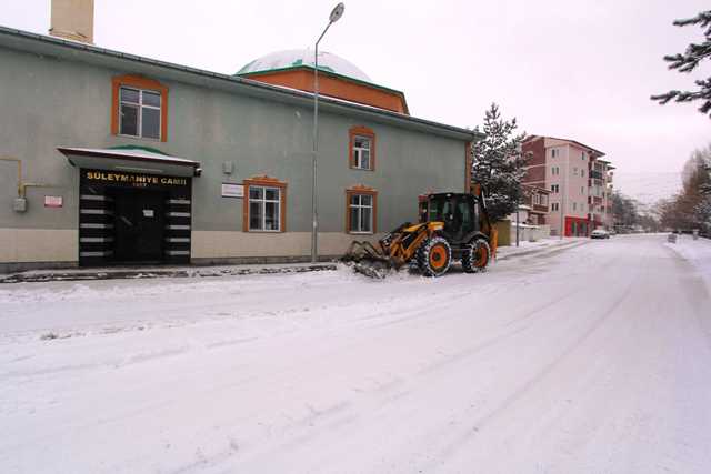 Kentte dün akşamdan itibaren etkisini sürdüren kar yağışı nedeniyle belediye ekipleri ana arterler, cadde ve sokaklarda karla mücadele çalışmalarını aralıksız devam ettiriyor.