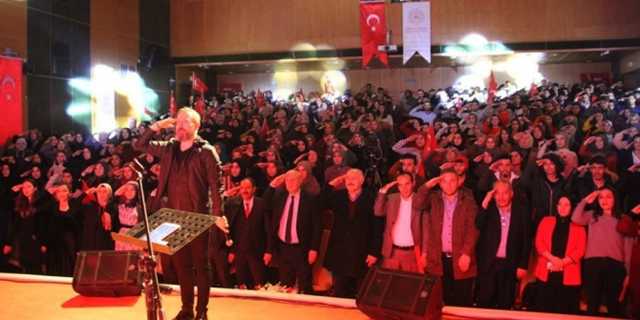 Konuşmaların ardından sahne alan Talha Bora Öge ve ekibi seslendirdikleri birbirinden güzel türkü ve şiirlerle katılımcılara unutulmaz bir gece yaşattılar. Programda protokol üyeleri, katılımcılar ile Öge ve ekibi, Türk Bayrakları ile birlikte asker selamı vererek Mehmetçik’e selam gönderdiler.