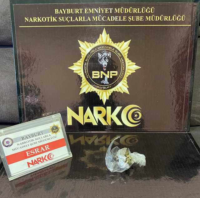 İl Emniyet Müdürlüğü Narkotik Suçlarla Mücadele Şube Müdürlüğünce alınan ihbar üzerine, Aydıntepe İlçesi Araklı Sokak üzerinde durdurulan araç içerisindeki M.T. ve Ş.A’nin üzerlerinde ve ikametlerinde yapılan aramalarda 1 adet hassas terazi, beş parça halinde toplamda 37,65 gram kubar esrar maddesi, 92 adet sentetik ecza, 2 top rulo halinde alüminyum folyo, uyuşturucu madde paketlemesinde kullanılan şeffaf naylon poşetler, 1 paket çarşaf diye tabir edilen sigara kağıdı, uyuşturucu içiminde kullanılan 5 adet aparat ve eklentileri, 1 adet el yapımı tabanca ve şarjöre takılı vaziyette üç adet fişek ele geçirildi.