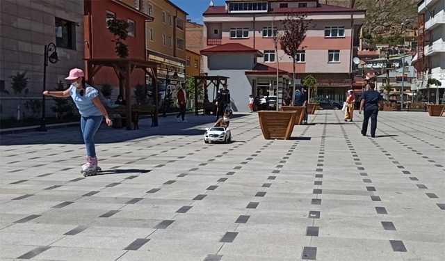 Bayburt’ta havaların ısınmasıyla birlikte şehir merkezinde bulunan Saray Bahçesi meydanı, gençlerin ve çocukların vakitlerini geçirdikleri önemli mekanlardan birisi haline geldi. Koronavirüs tedbirleri kapsamında Çarşamba ve Cuma günleri 18 yaş altı sokağa çıkma iznini fırsat bilenler bisikletleriyle ve patenleriyle ailelerinin eşliğinde Saray Bahçesinde saatlerce vakit geçirdiler.