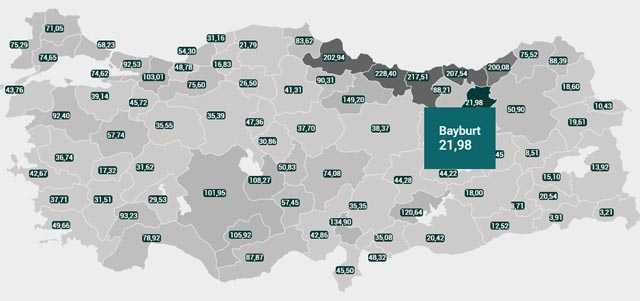 Bayburt 21.98- Nüfus: 81 bin 910