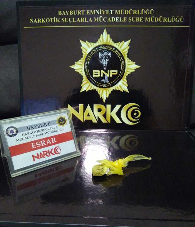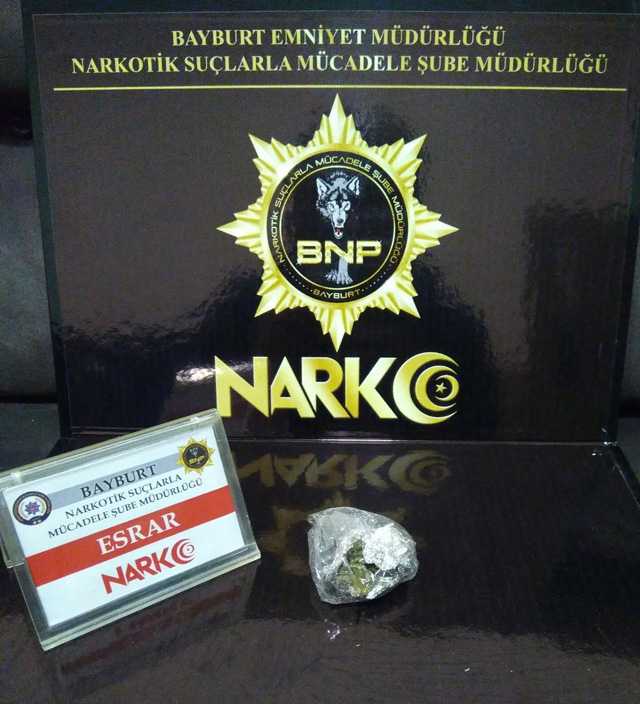Bayburt İl Emniyet Müdürlüğü Narkotik Suçlarla Mücadele Şube Müdürlüğü ekipleri, Bayburt şehir merkezi girişinde uygulama noktasında durdurulan 2 si otomobil birisi yolcu minibüsü 3 ayrı araçta yapılan aramalarda uyuşturucu maddesi ele geçirildi.