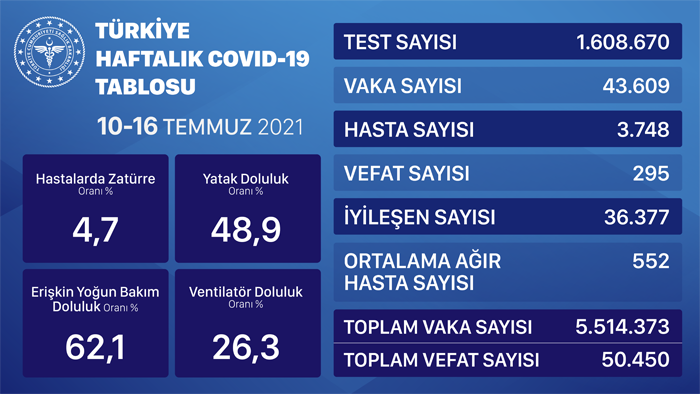 10-16 Temmuz tarihleri arasında illerin vaka sayıları: