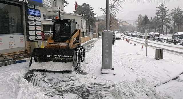 Gece boyundan itibaren kent merkezi ve köy yollarında karla mücadele ekipleri çalışmalarını aralıksız bir şekilde sürdürüyor.