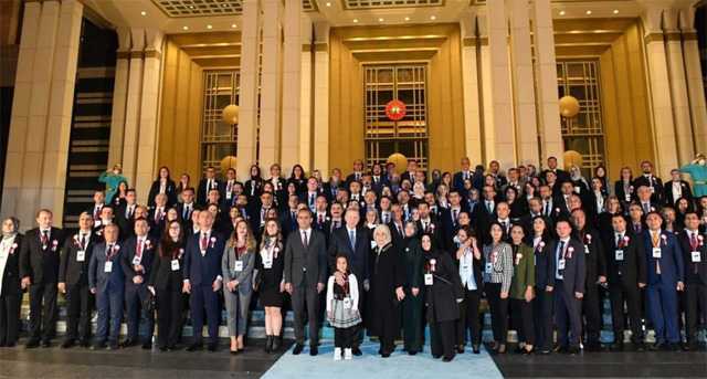 Cumhurbaşkanı Recep Tayyip Erdoğan, 24 Kasım Öğretmenler Günü dolayısıyla Cumhurbaşkanlığı Külliyesinde Millî Eğitim Bakanı Mahmut Özer ve beraberindeki 81 ilden gelen öğretmenlerle buluştu.