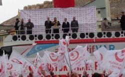 Soğuk ve karlı bir havada Bayburt’a gelen ve Saat Kulesi meydanından halka hitap eden Büyük Birlik Partisi Genel Başkanı Mustafa Destici konuşmalarının büyük bir bölümünde iktidara yüklenerek, gerçeklerin anlatılmadığını ve halkın işsizliğe ve yoksulluğa mahkum edildiğini vurgulayarak partisine destek istedi.