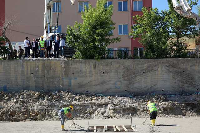 Burada yaptığı açıklamada inşaata başlamanın mutluluğu yaşadıklarını kaydeden Vali Epcim, “Bugün itibariyle burada temel atma çalışmaları başladı. İnşallah 100 gün içerisinde çok hızlı bir şekilde 12 derslikli ilkokul binamızı burada tamamlamış olacağız.” dedi.