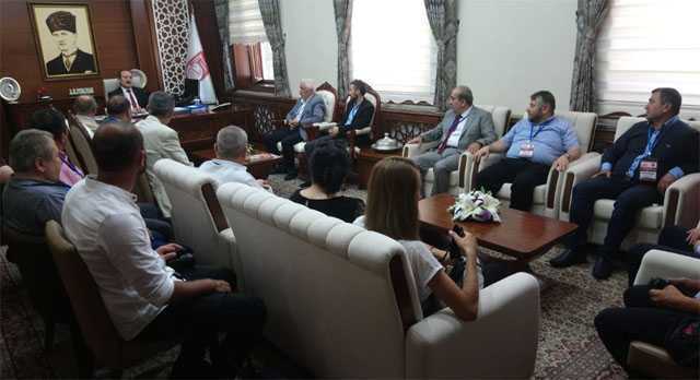 Vali Ali Hamza Pehlivan’ın makamında gerçekleşen ziyarette Bayburt Gazeteciler Cemiyeti Başkanı Yaşar Yıldız misafirleri Bayburt’a ağırlamaktan mutluluk duyduğunu belirtti.