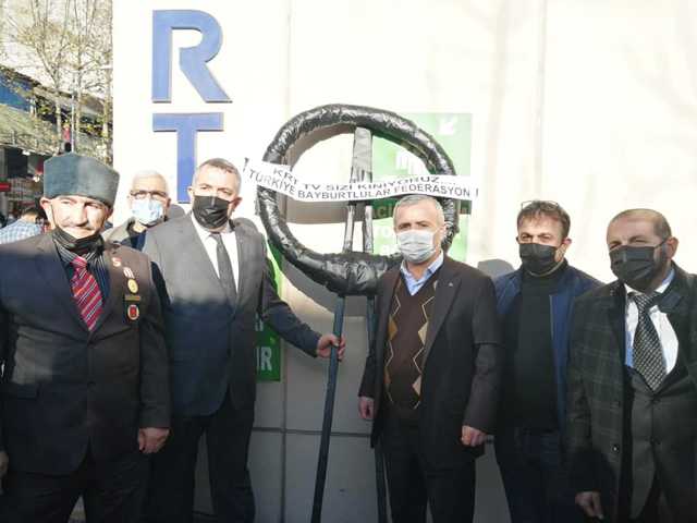 KRT Televizyonu binası önünde açıklama yapan Türkiye Bayburtlular Federasyonu Başkanı Hasan Saka, “ KRT televizyonundaki programda yapılan konuşma Bayburtlular olarak bizleri ve bölge insanını üzmüştür. Sizlerin huzurunda KRT televizyonunu protesto ediyor bu sözleri kendilerine iade ediyorum” dedi.