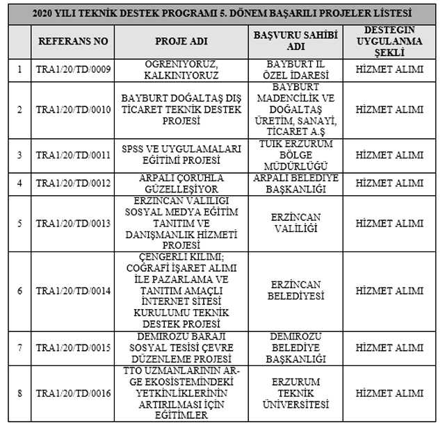 2020 yılı teknik destek programı 5. dönem başarılı projeler listesi: