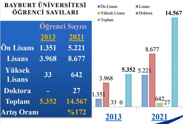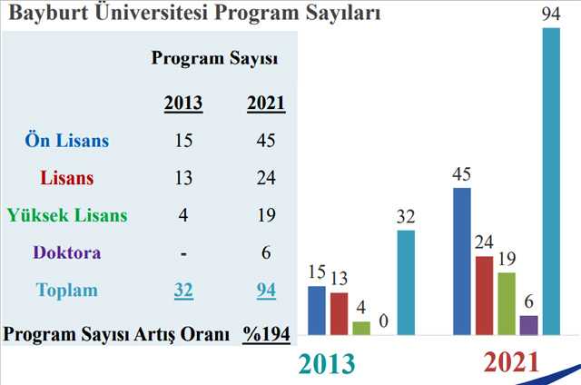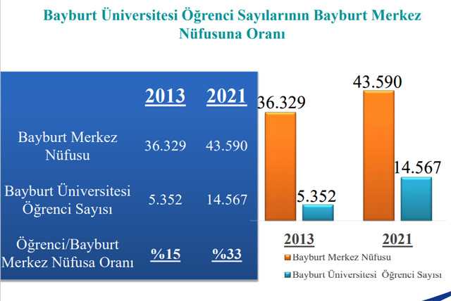 Bayburt Üniversitesi’nin artık kendi kendine yetebilen bir üniversite halini aldığı vurgulayan Rektör Coşkun; 2008 yılında kurulan ve bu anlamda genç bir üniversite olan Bayburt Üniversitesi’nin akademik ve fiziki anlamda da her geçen yıl büyüdüğüne dikkat çekti. Bayburt Üniversitesi’nin yaklaşık 14 bin öğrencisi, 450 akademik, 224 idari personeli ve 182 sürekli işçisiyle her geçen gün büyüyen ve gelişen bir üniversite olduğunu söyledi.