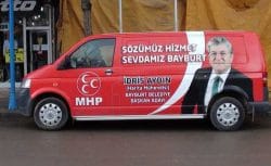 Bayburt yerel seçimlere sayılı günler kalmasına rağmen siyasi havaya bürünememiş olsa da,partilerin araçlarına giydirilen resimler siyasi hareketlilik sinyallerini veriyor.